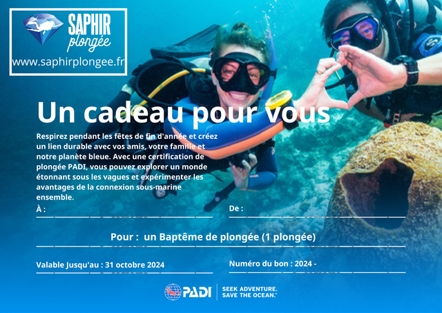 un baptême de plongée en 1 to 1, pour découvrir de nouvelles sensations et expérimenté la respiration sous l'eau ! profondeur Max 6 m, accessible dès l'âge de 8 ans (2m max dans ce cas). Tout inclus matériel et prestation du moniteur en individuel.